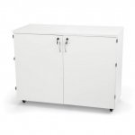 - Safely conceal and secure all your sewing notions, fabric and equipment by closing both doors and turning the key to lock them shut